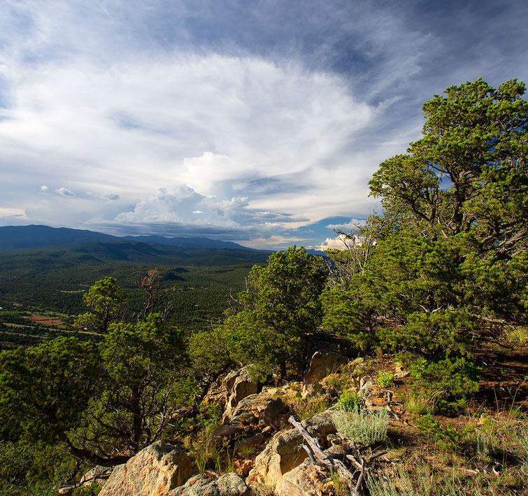 Estate Preserve #1, as the crown jewel of all of Crystal Mesa’s expansive properties, features 30 energetically potent, wooded acres with over 800 feet of mesa edge vista frontage at the northernmost promontory of the vast Glorieta Mesa.